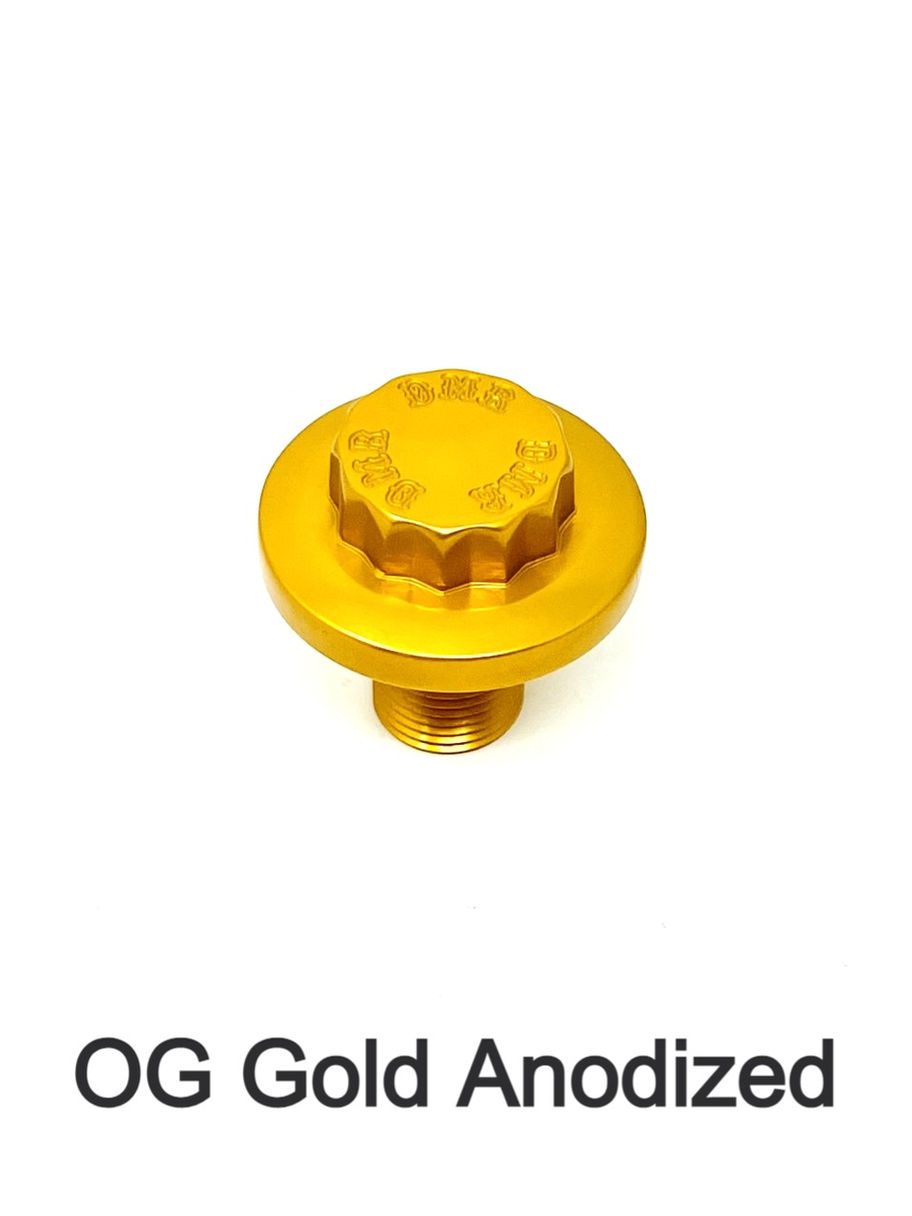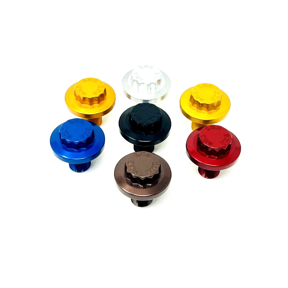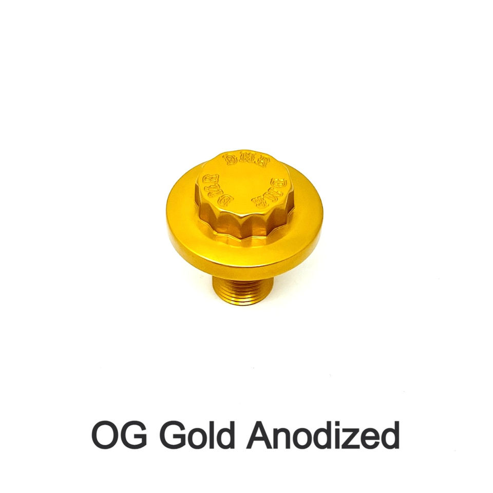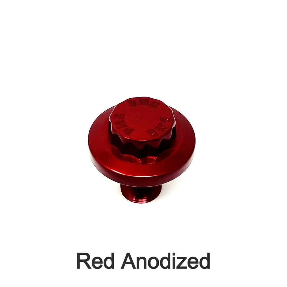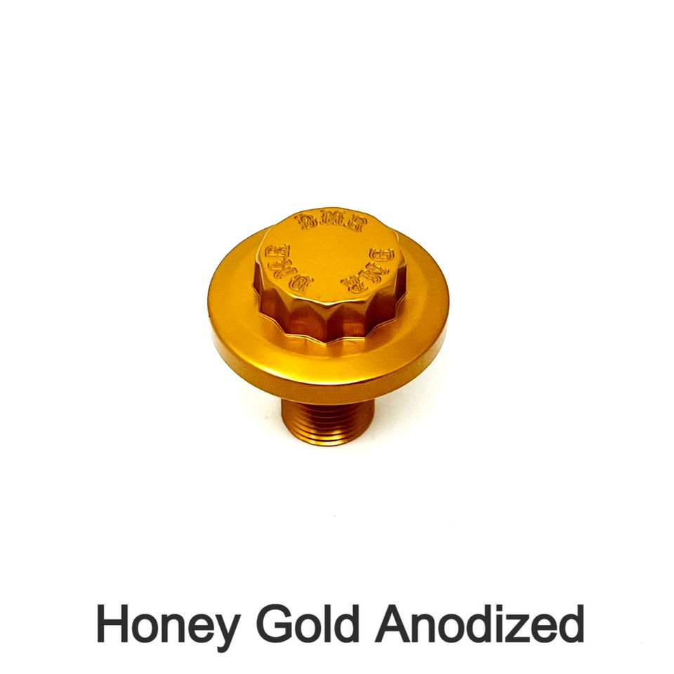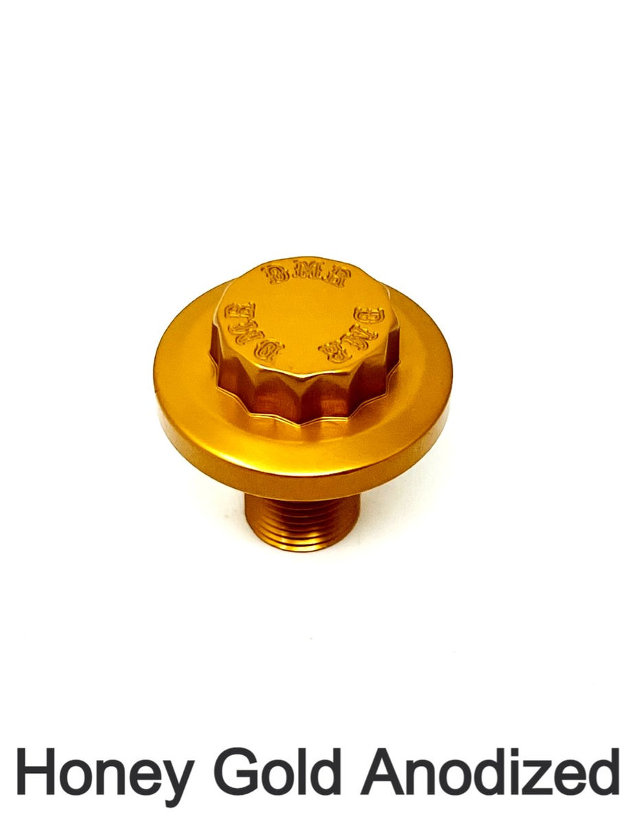 DMR 12pt steering stem bolt is machined from 6061 T-6 billet aluminum. Available in a variety of finishes. Replaces stock steering stem bolt on models listed below and some aftermarket triple trees with 5/8"-18 thread pitch such as Pro-One 39mm narrowglide trees and others. Installs using a 13/16" 12 point socket or wrench (not included). Made in USA!