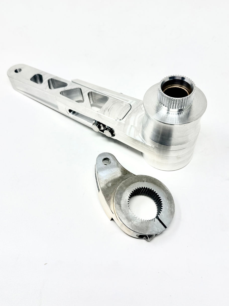 DMR Destroyer bagger/touring fully adjustable brake lever. Machined from 6061 T-6 billet aluminum. 3/8"-16 threaded hole for brake pedal mounting. Works great with our Beartrap bagger brake pedal as seen in some pics but not included. Fully adjustable length and splined backside for precise up and down adjustment. Allows you to get the perfect pedal position for you! Fitments include 08-13, and 2014 and up touring models FLHT/FLHR/FLHX/FLTRX/FLTRU/FLTRX AND HD FL TRIKE MODELS. Available in machine finish, chrome, anodized colors, and powdercoated finishes.Powdercoated parts are done per order and usually take 1 to 1-1/2 weeks turnaround. Comes with bearing installed. Made in USA.