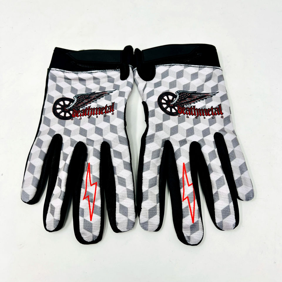 DMR winged wheel gloves with 3D checkerboard pattern are 4 way stretch for comfort with Velcro straps. Features touch screen fingers and no seams in the palm for maximum grip and durability.
